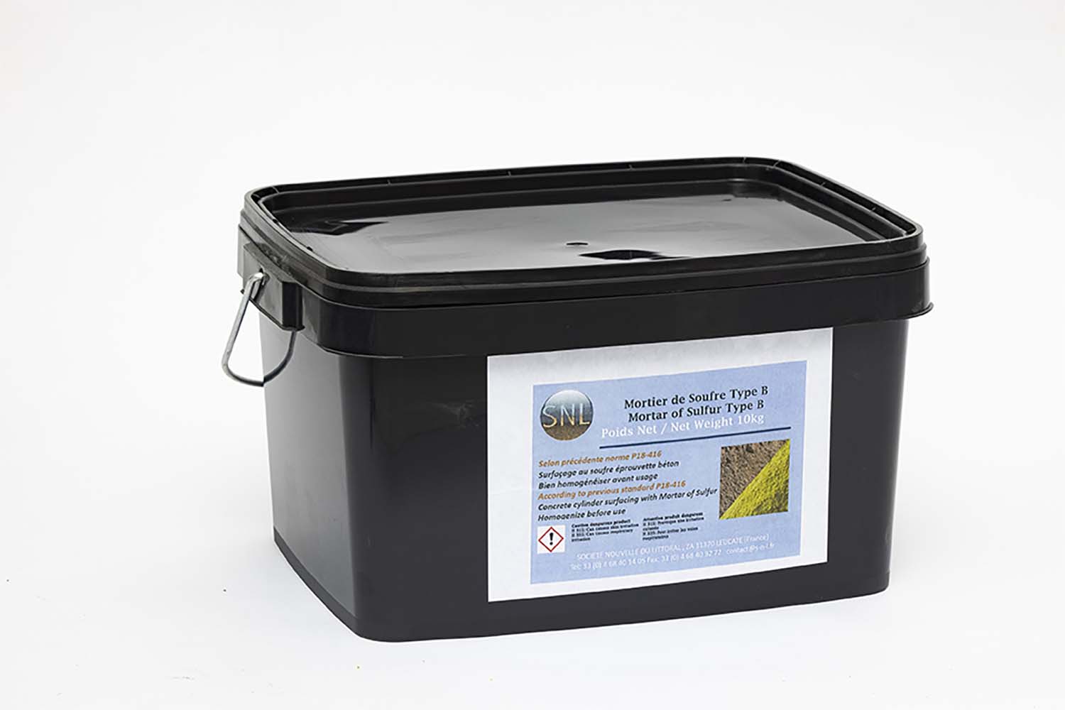Le mortier de soufre de type B-HP en référence à l’ancienne norme P418-16 est utilisé pour le surfaçage des éprouvettes cylindrique de béton haute résistance de 60 à 120MPa selon l’ancienne norme P418-16. Il est utilisé pour des essais internes. Ce  produit est fabriqué  sur demande car la norme NF P18-416 a été remplacée par la norme EN 12390-3 qui n’a pas repris le mortier de type B dans son champs d’application.
